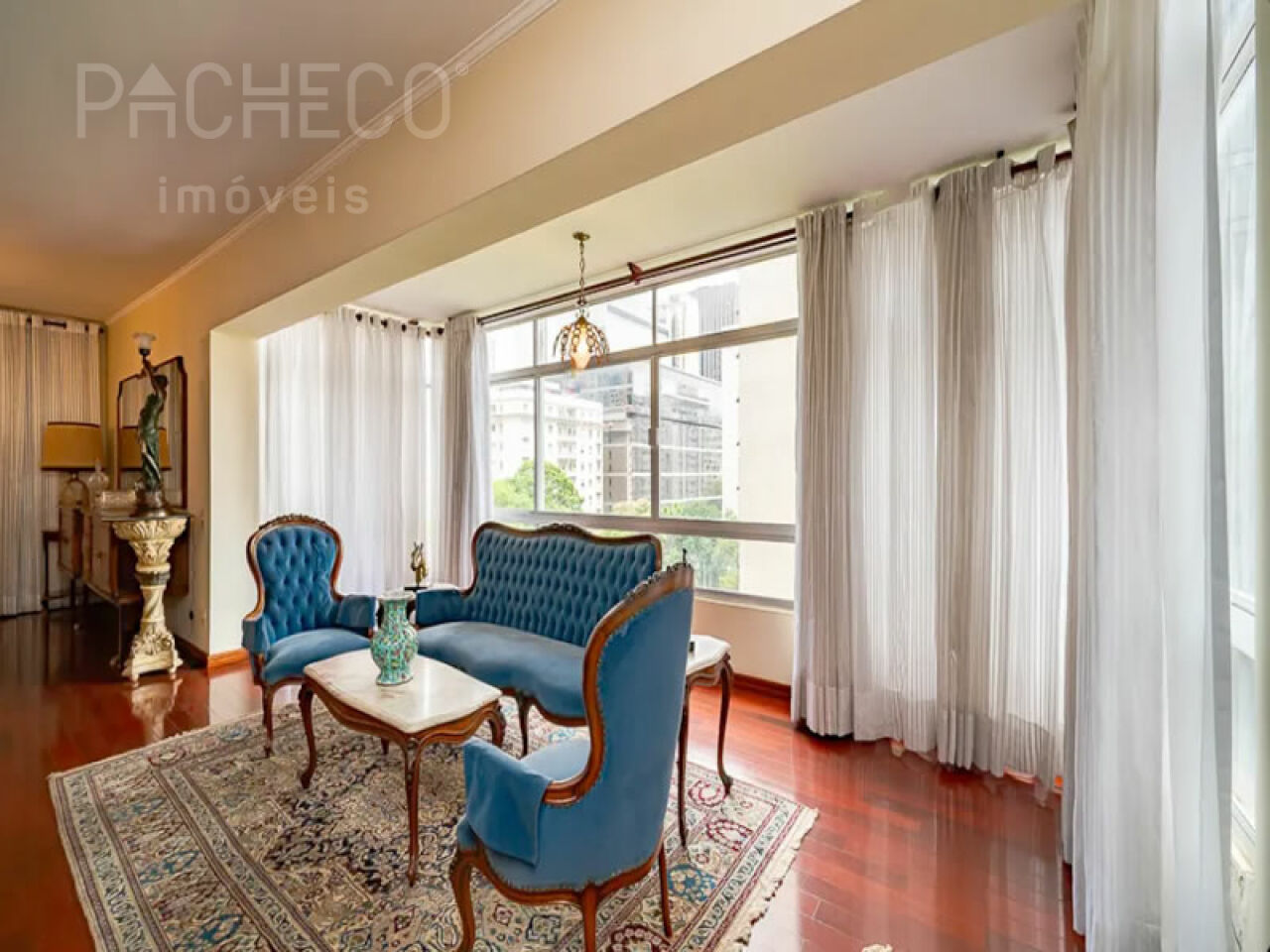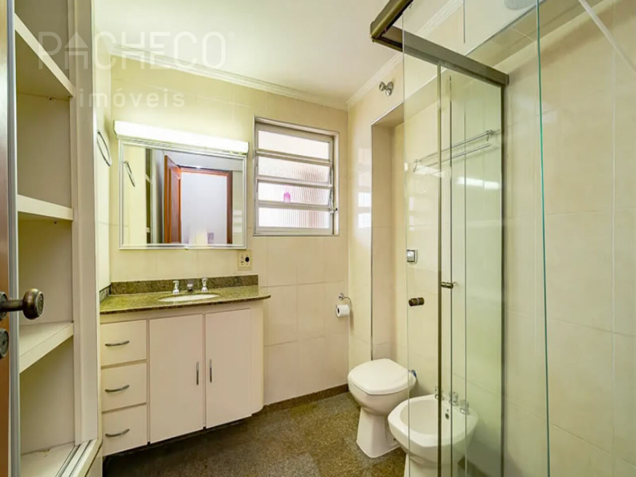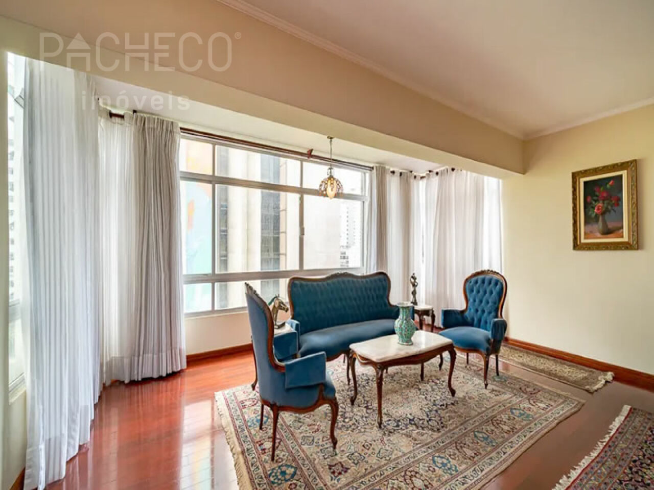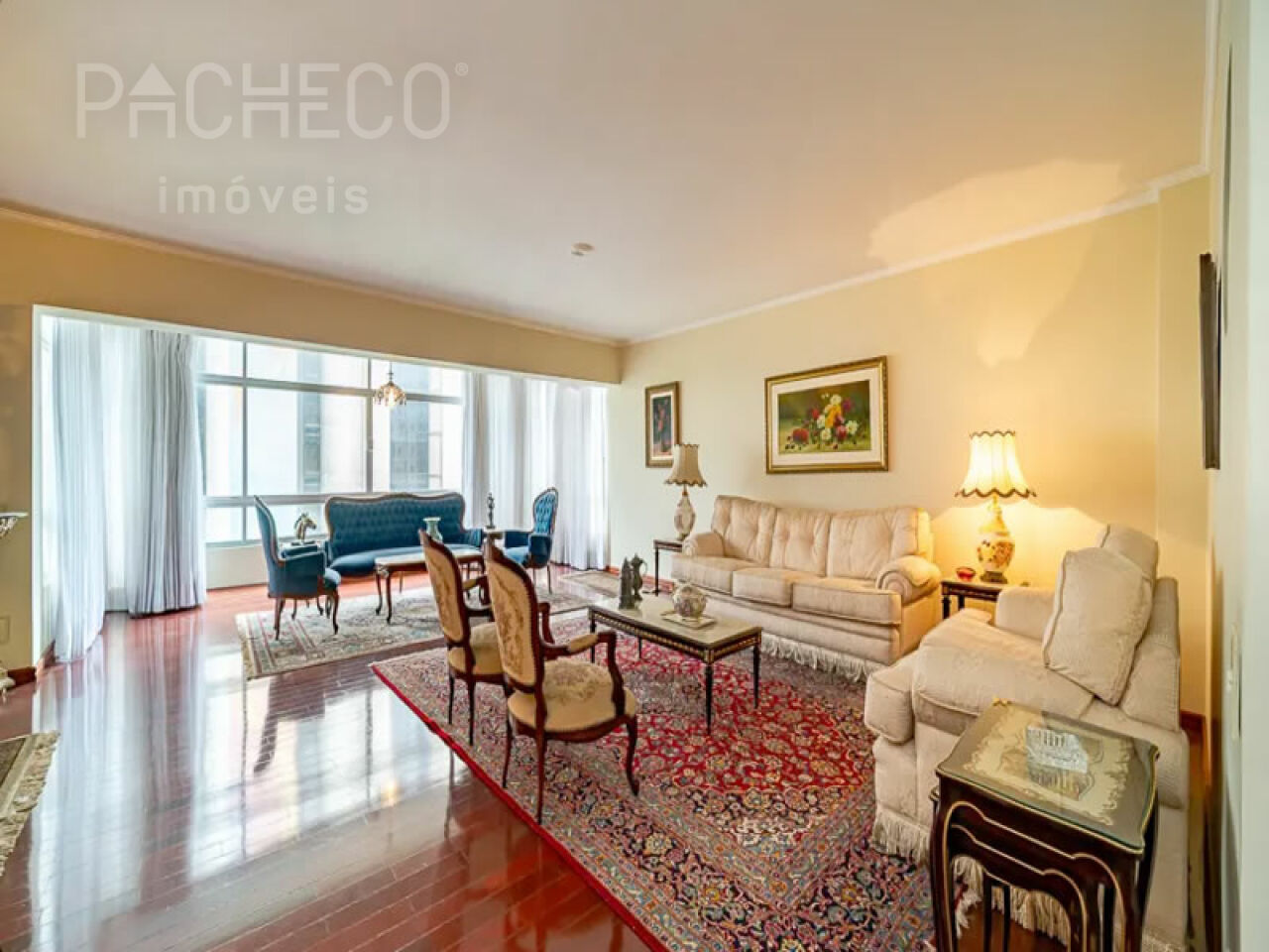Living com 2 ambientes, piso em madeira nobre, lavabo, lareira elétrica e sacada, suíte com varanda e repleta de armários, banheiro da suíte impecável com acabamento em porcelanato, dormitório com armários embutidos de excelente qualidade, varanda, banheiro social, cozinha com móveis planejados e marcenaria arrojada. Ar condicionado em todos os ambientes e aquecimento a gás. 1 vaga de garagem.